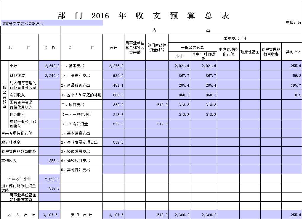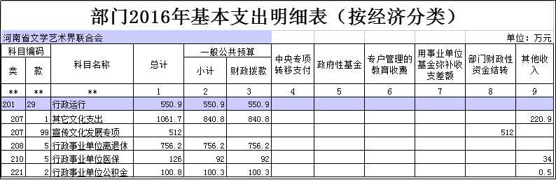 2016年河南省文聯(lián)部門(mén)預(yù)算公開(kāi)