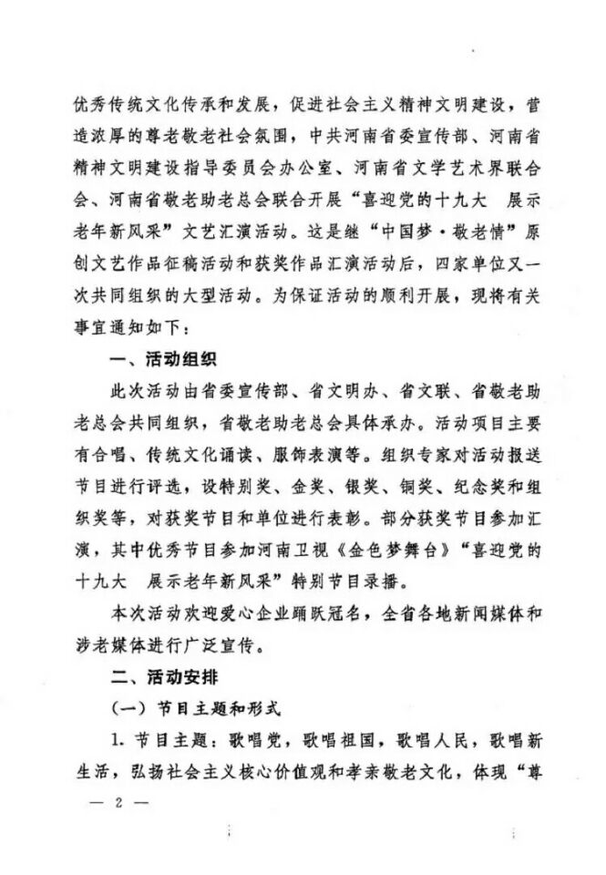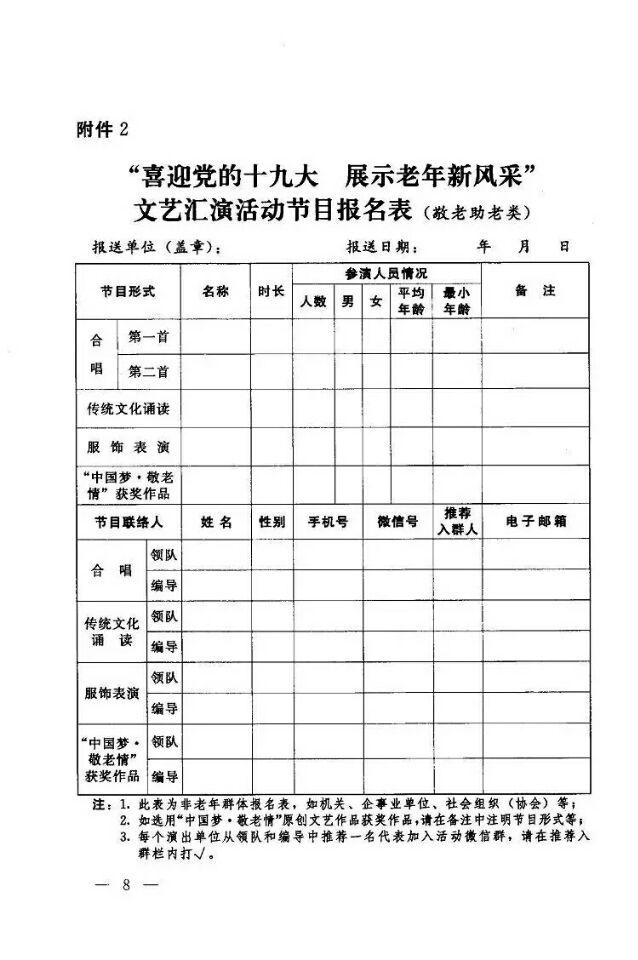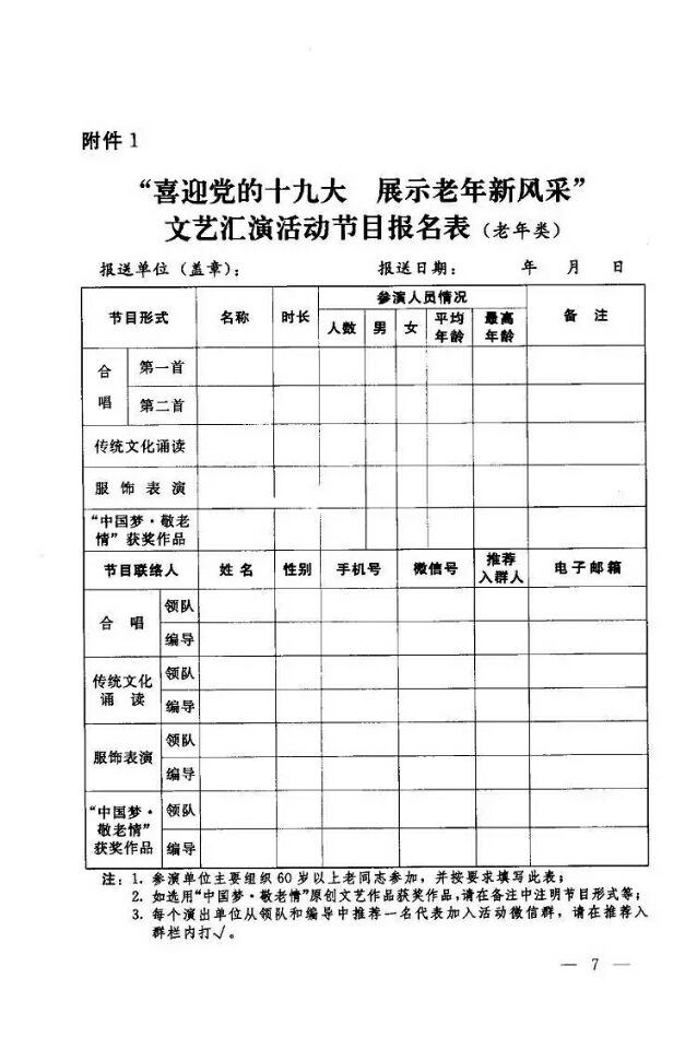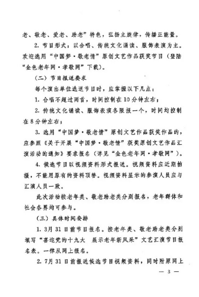 關(guān)于“喜迎黨的十九大 展示老年新風(fēng)采”文藝匯演活動報名事宜的說明