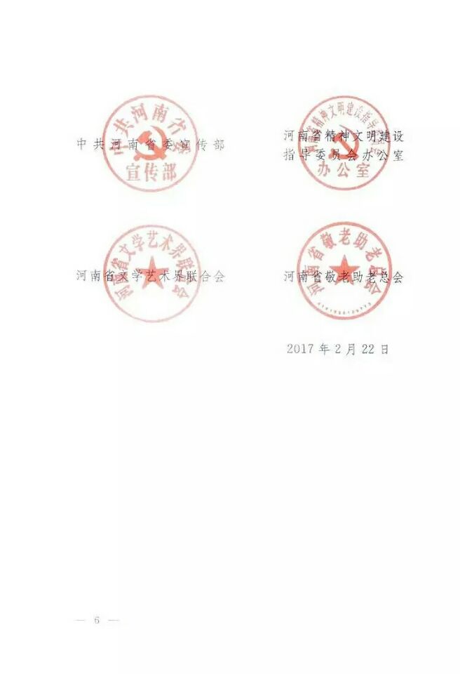 省委宣傳部、省文明辦、省文聯(lián)、省敬老助老總會《關(guān)于組織開展“喜迎黨的十九大 展示老年新風(fēng)采”文藝匯演活動的通知》(豫老總〔2017〕1號)印發(fā)后,社會反響強烈,眾多單位和團體踴躍報名參與,紛紛通過不同方式咨詢和了解情況,但是由于部分單位和團體對報名理解有誤,延誤了報名時機。應(yīng)廣大參與者的懇切要求,為滿足大家的愿望,現(xiàn)就報名事宜說明如下: