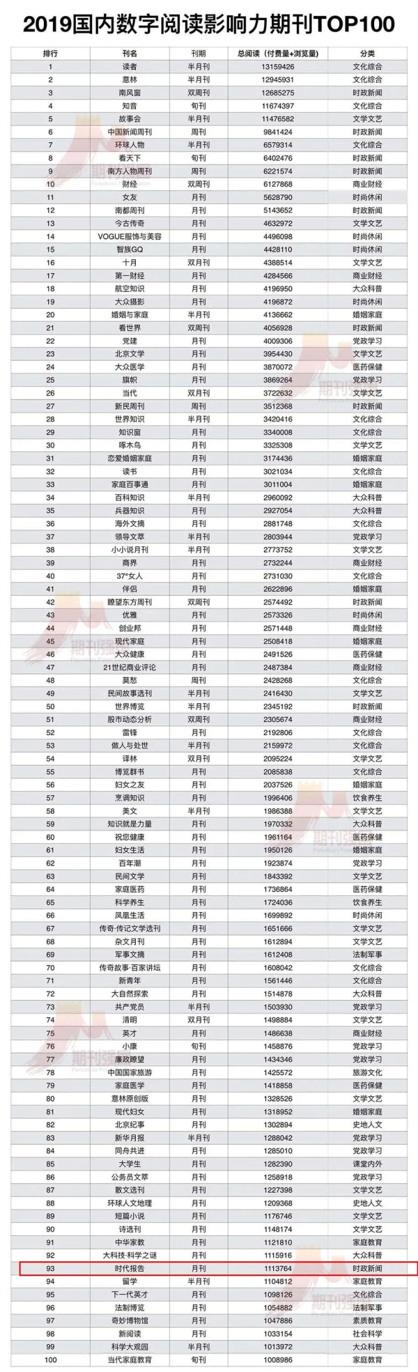 《時(shí)代報(bào)告》上榜“2019中國(guó)人文大眾期刊數(shù)字閱讀影響力TOP100”