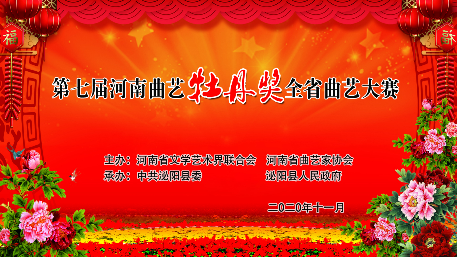 11月16至18日,由省文學(xué)藝術(shù)界聯(lián)合會、省曲藝家協(xié)會主辦,泌陽縣委、縣政府承辦的第七屆河南曲藝牡丹獎全省曲藝大賽在泌陽成功舉辦。泌陽縣被授予“河南省曲藝之鄉(xiāng)”稱號。