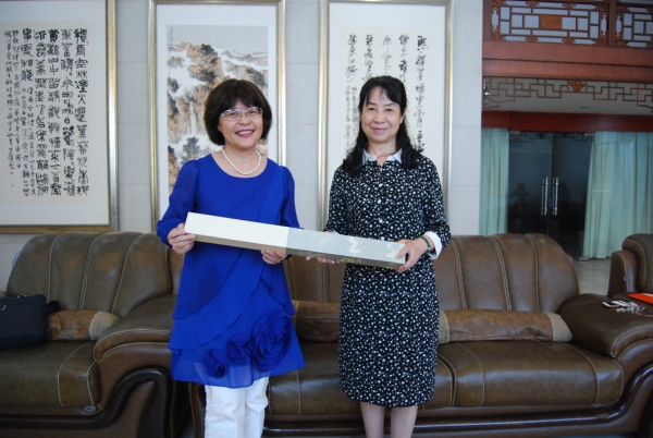 潘淑梅理事長(左)、楊杰主席(右)交流合影