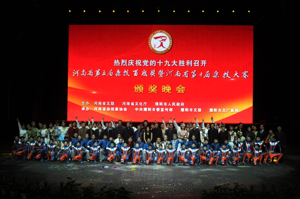 經(jīng)過了兩場總決賽后,活動于29日晚頒獎(jiǎng)。中國文聯(lián)副主席、中國雜技家協(xié)會主席、河北省政協(xié)副主席邊發(fā)吉,中國雜技家協(xié)會分黨組成員、副秘書長肖世革,中國文聯(lián)雜技藝術(shù)中心原主任宓魯,河南省委宣傳部副巡視員趙鋼,省文聯(lián)黨組書記王守國,省文化廳黨組成員、副廳長李霞,省文聯(lián)黨組成員、副主席張劍鋒,河南省文化廳副巡視員、省雜技家協(xié)會主席閆敬彩,濮陽市領(lǐng)導(dǎo)李剛、徐蘭峰、王載文、余廣慶、張錦印、張宏義等出席晚會并為獲獎(jiǎng)單位和個(gè)人頒獎(jiǎng)。