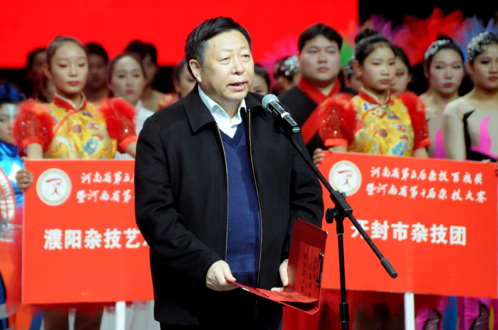 河南省文化廳副巡視員、省雜技家協(xié)會主席閆敬彩主持開幕式