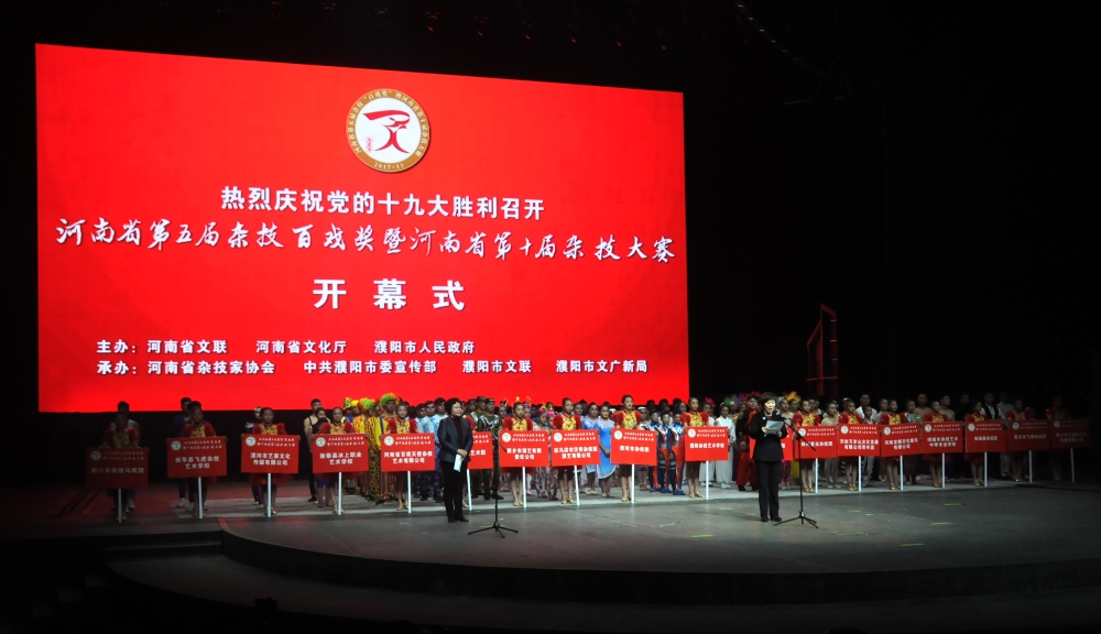 28日,此次活動在濮陽市水秀國際大劇院開幕。省政協(xié)副主席李英杰,省政協(xié)教科文衛(wèi)體委員會副主任李新中,省文化廳黨組成員、副廳長李霞,省文聯(lián)黨組成員、副主席張劍鋒,省文化廳副巡視員、省雜技家協(xié)會主席閆敬彩,濮陽市領(lǐng)導(dǎo)宋殿宇、張錦印、張宏義、趙洪勛出席大賽開幕式。