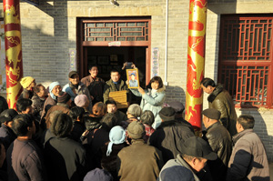 清晨,天剛蒙蒙亮,志愿者服務(wù)隊(duì)就帶著彩色打印機(jī)、相紙、相框等裝備,冒著嚴(yán)寒,驅(qū)車奔赴長(zhǎng)垣縣苗寨鎮(zhèn)東舊城村。初冬的豫北平原,寒意襲人,但志愿者們熱火朝天,調(diào)設(shè)備、選背景、按快門、忙打印、快裝框,來(lái)回穿梭,為村民拍攝、沖印“全家福”。了解到村里一位90歲的老人侍文臣因行動(dòng)不便,無(wú)法前來(lái)拍照,攝影志愿者朱偉民、董芳等帶著相機(jī),來(lái)到老人家中,為四世同堂的老人一家拍攝了“全家福”。一部分村民由于有事來(lái)得比較遲,志愿者們也一直等到最后一個(gè)人滿意離開。一張張制作精美的“全家?!闭宫F(xiàn)在群眾面前。村民互相“曬”、互相看,有說(shuō)有笑,喜悅之情溢于言表。活動(dòng)當(dāng)天,志愿者們共服務(wù)群眾200余人,為村民拍攝“全家?!?80余幅。當(dāng)天,志愿者們還深入苗寨敬老院慰問(wèn),并為26位孤寡老人拍攝了照片。