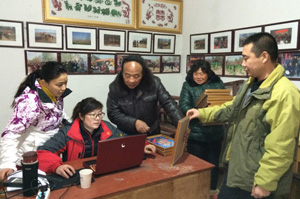 志愿者們?yōu)榇迕裰v授攝影知識(shí)(上左)、拍照(上右)、打印制作全家福(下左)并向村民贈(zèng)送(下右)。