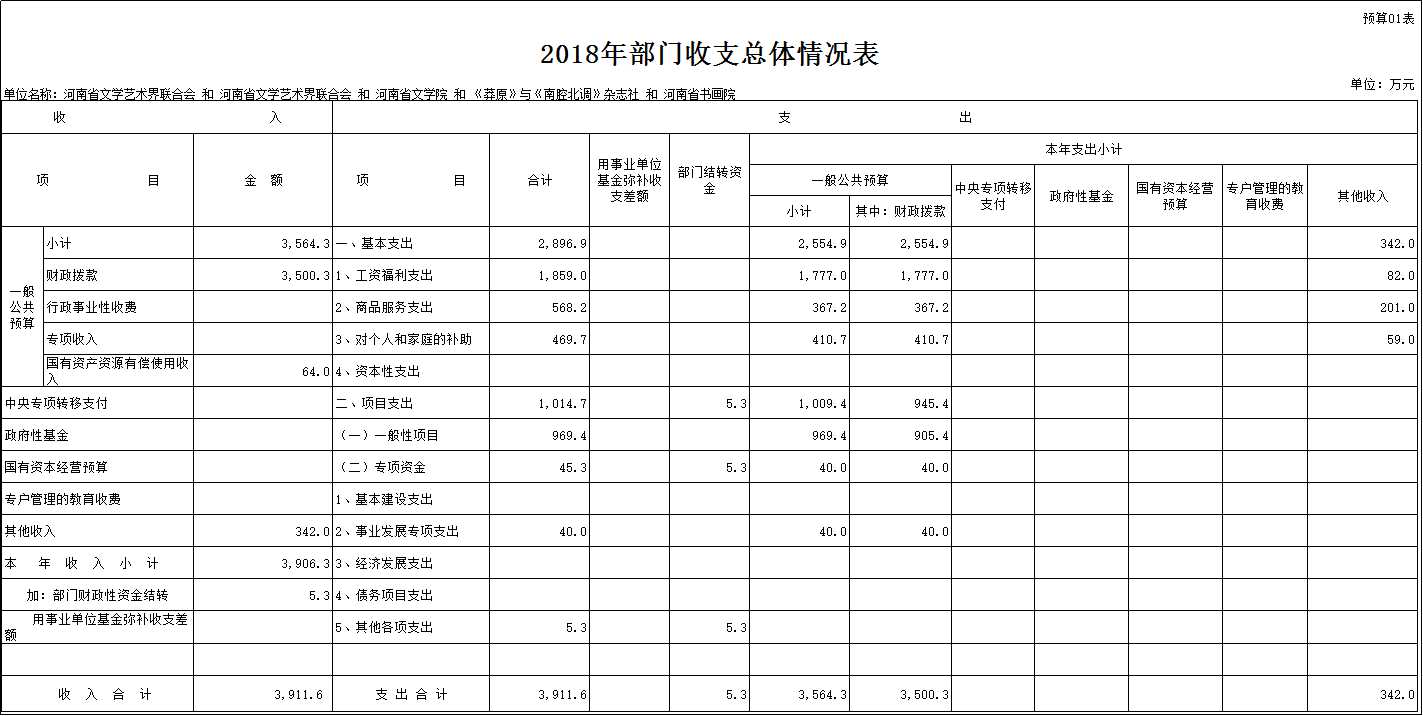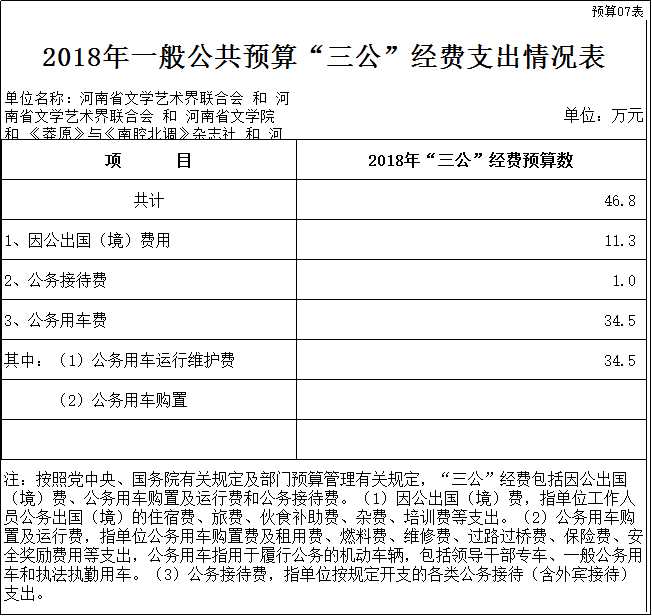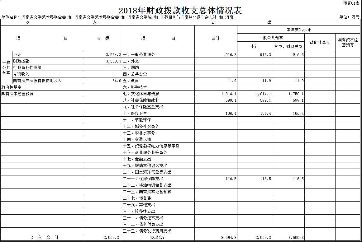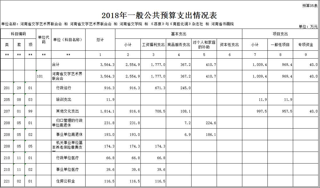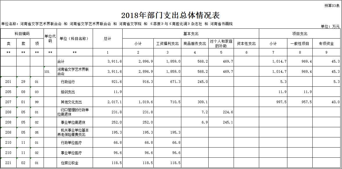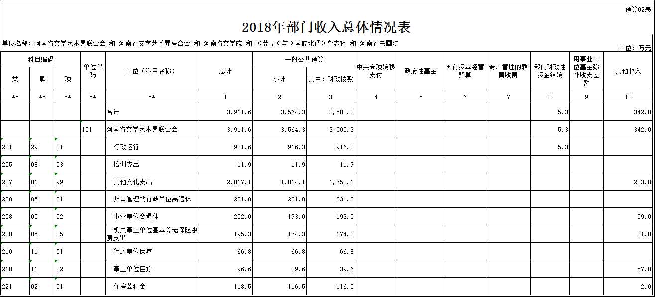 2018年度河南省文學(xué)藝術(shù)界聯(lián)合會(huì)預(yù)算公開