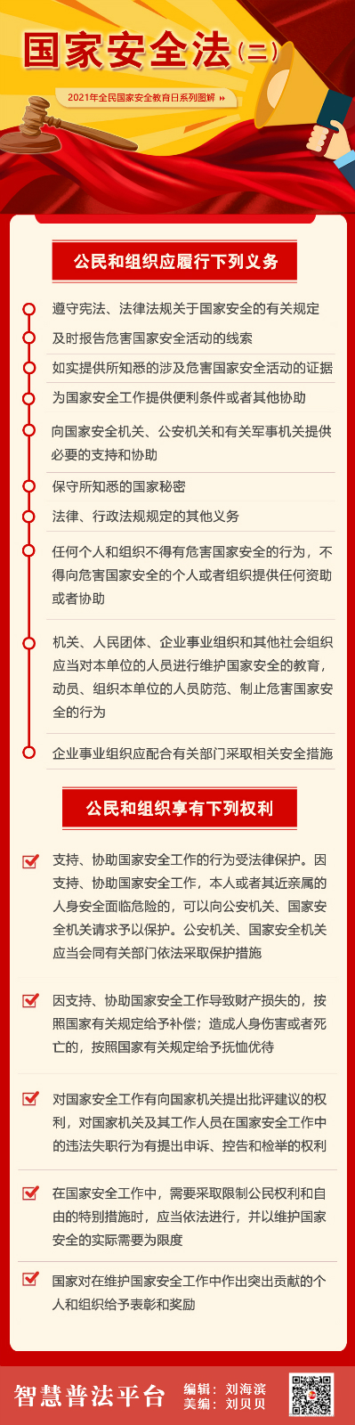 國家安全教育日|國家安全法(二) 發(fā)布時間:2021-04-15 來源:河南文藝網 人氣:6143 (轉自中國普法網,王寧編輯) 上一篇: 筑牢國家生物安全防線 構建科學完善法治體系|專家解讀生物安全法 下一篇: 國家安全教育日|國家安全法(一)