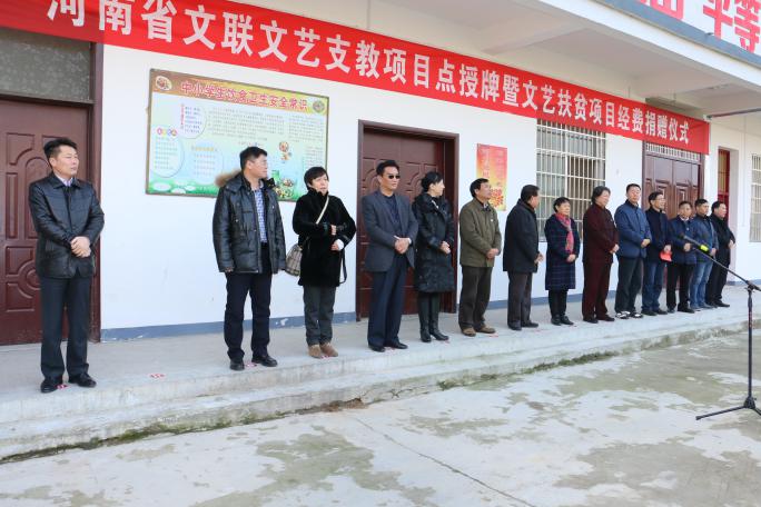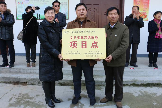 其間,中國(guó)文聯(lián)、河南省文聯(lián)為文殊鄉(xiāng)方洼村文藝支教點(diǎn)授牌,并捐助文藝扶貧項(xiàng)目經(jīng)費(fèi),以推動(dòng)文藝支教等文藝扶貧活動(dòng)長(zhǎng)期開展。申慧生主持了文藝支教項(xiàng)目點(diǎn)授牌暨文藝扶貧項(xiàng)目經(jīng)費(fèi)捐贈(zèng)儀式。邵志軍、王笑南、苗樹群、汪天行、吳震啟、宋靖、劉杰、張富領(lǐng)、楊金成、余保林以及信陽(yáng)市人大常委會(huì)副主任高曙霞、中共光山縣委書記劉勇等有關(guān)領(lǐng)導(dǎo)出席授牌暨捐贈(zèng)儀式。