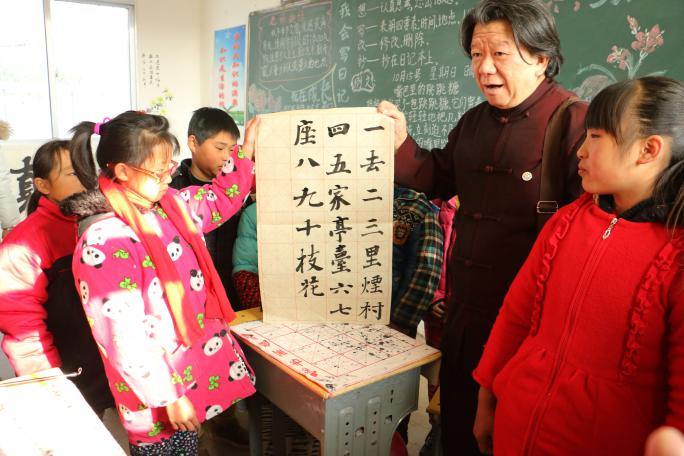 藝術(shù)家吳震啟教方洼小學(xué)學(xué)生寫書法