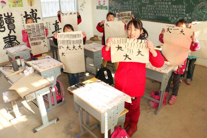方洼小學(xué)學(xué)生展示自己的書法作品