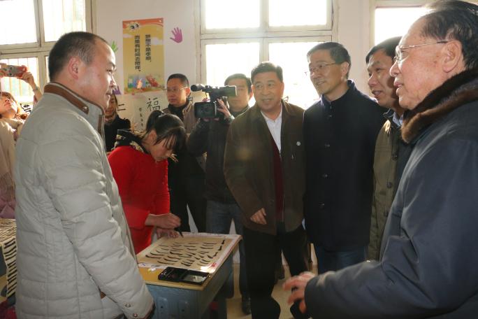 王笑南觀看方洼小學(xué)學(xué)生寫書法
