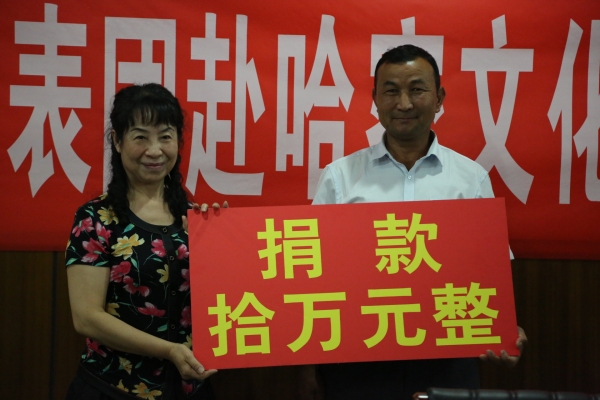 為了表達(dá)對(duì)庫(kù)爾班·吐魯木的敬意,楊杰代表河南省文聯(lián)和廣大文藝工作者向庫(kù)爾班·吐魯木民族互助基金會(huì)捐贈(zèng)五萬(wàn)元現(xiàn)金。