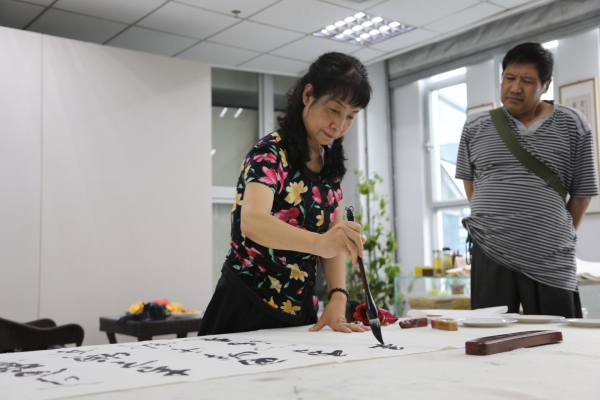 河南省文聯(lián)書(shū)畫(huà)家文化交流書(shū)畫(huà)筆會(huì)在十三師火箭農(nóng)場(chǎng)創(chuàng)博文化產(chǎn)業(yè)園舉行。楊杰、李明、張毅敏、張永樂(lè)、姜寶平等揮毫潑墨,把自己對(duì)軍墾人的無(wú)私奉獻(xiàn)、不畏艱苦的崇敬之情融于筆端,精心創(chuàng)作了具有各自藝術(shù)風(fēng)格的書(shū)畫(huà)作品相贈(zèng),表達(dá)了敬意。