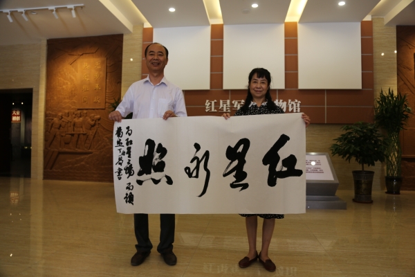 兵團(tuán)十三師師黨委常委、紀(jì)委書(shū)記張明勝代表師黨委向河南省文聯(lián)、美協(xié)、書(shū)協(xié)分別贈(zèng)送了錦旗,對(duì)河南省文聯(lián)書(shū)畫(huà)家代表團(tuán)的文化援疆活動(dòng)給予了高度評(píng)價(jià)和誠(chéng)摯感謝。他表示,希望河南省文聯(lián)的藝術(shù)家們能常來(lái)新疆走一走,看一看,把河南的優(yōu)秀文化帶到新疆,帶到兵團(tuán),進(jìn)一步豐富兵團(tuán)人的文化生活。