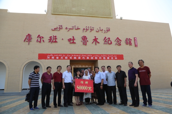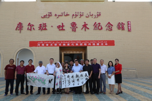 7月10日,代表團(tuán)一行來(lái)到新疆于田縣庫(kù)爾班·吐魯木紀(jì)念館參觀、學(xué)習(xí),并把河南文藝工作者的誠(chéng)摯慰問(wèn)帶給廣大的維吾爾族群眾。