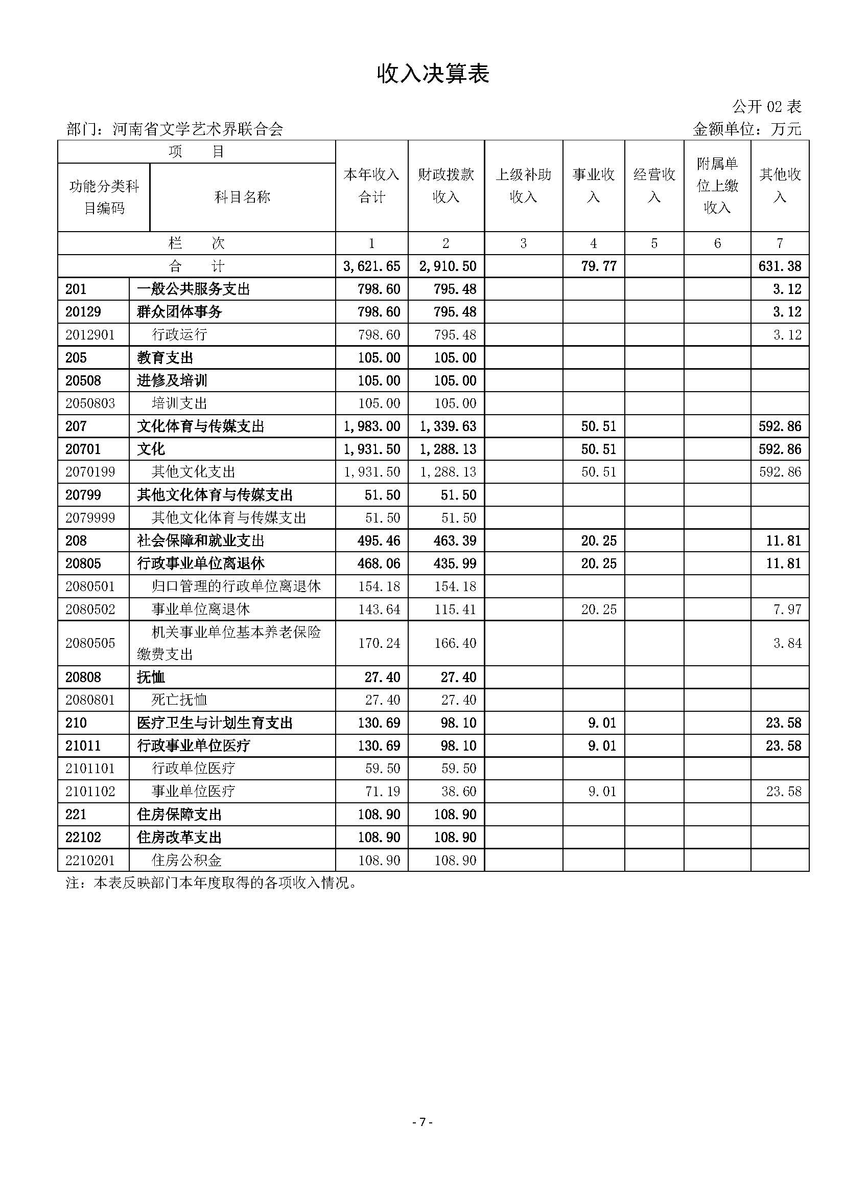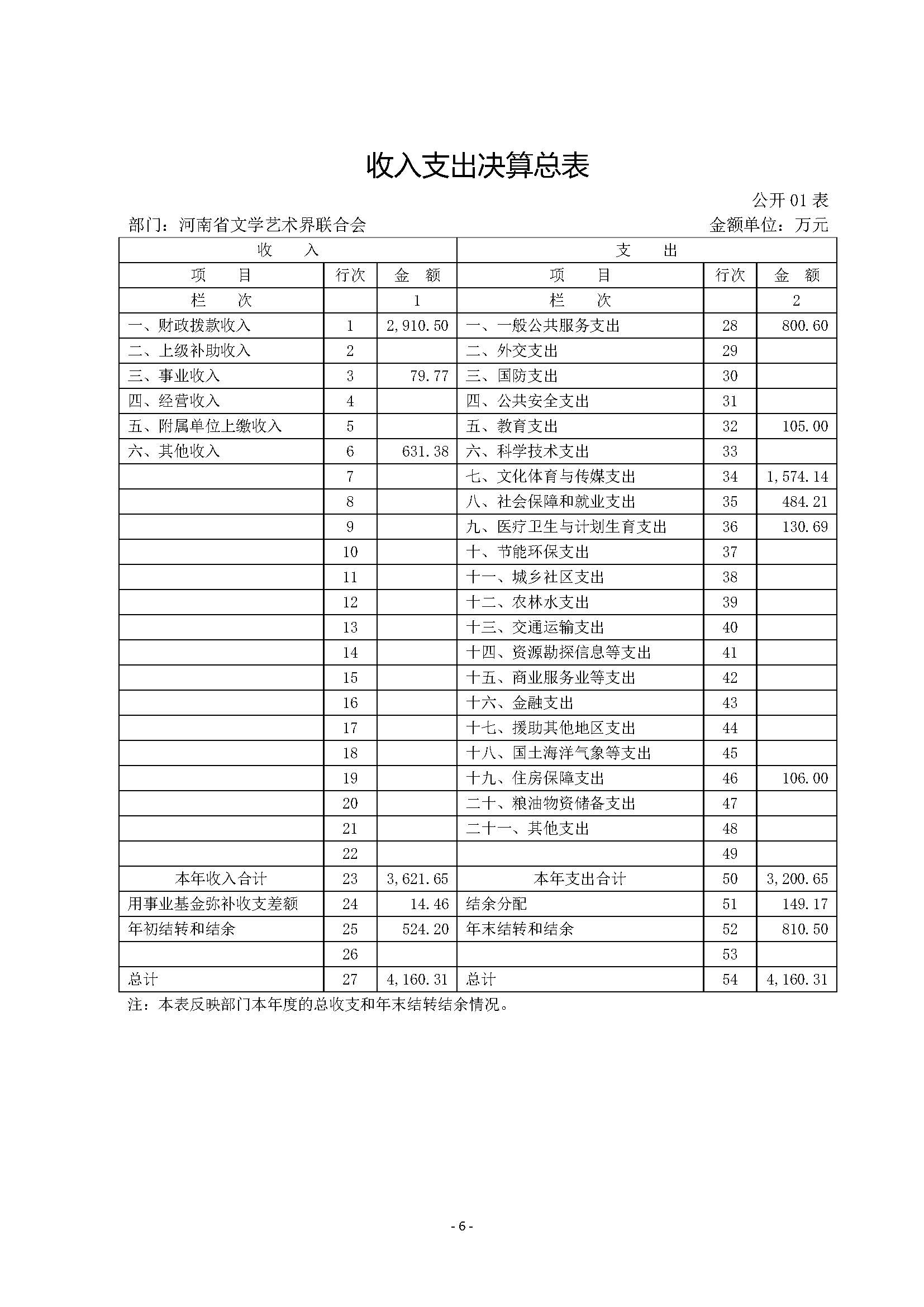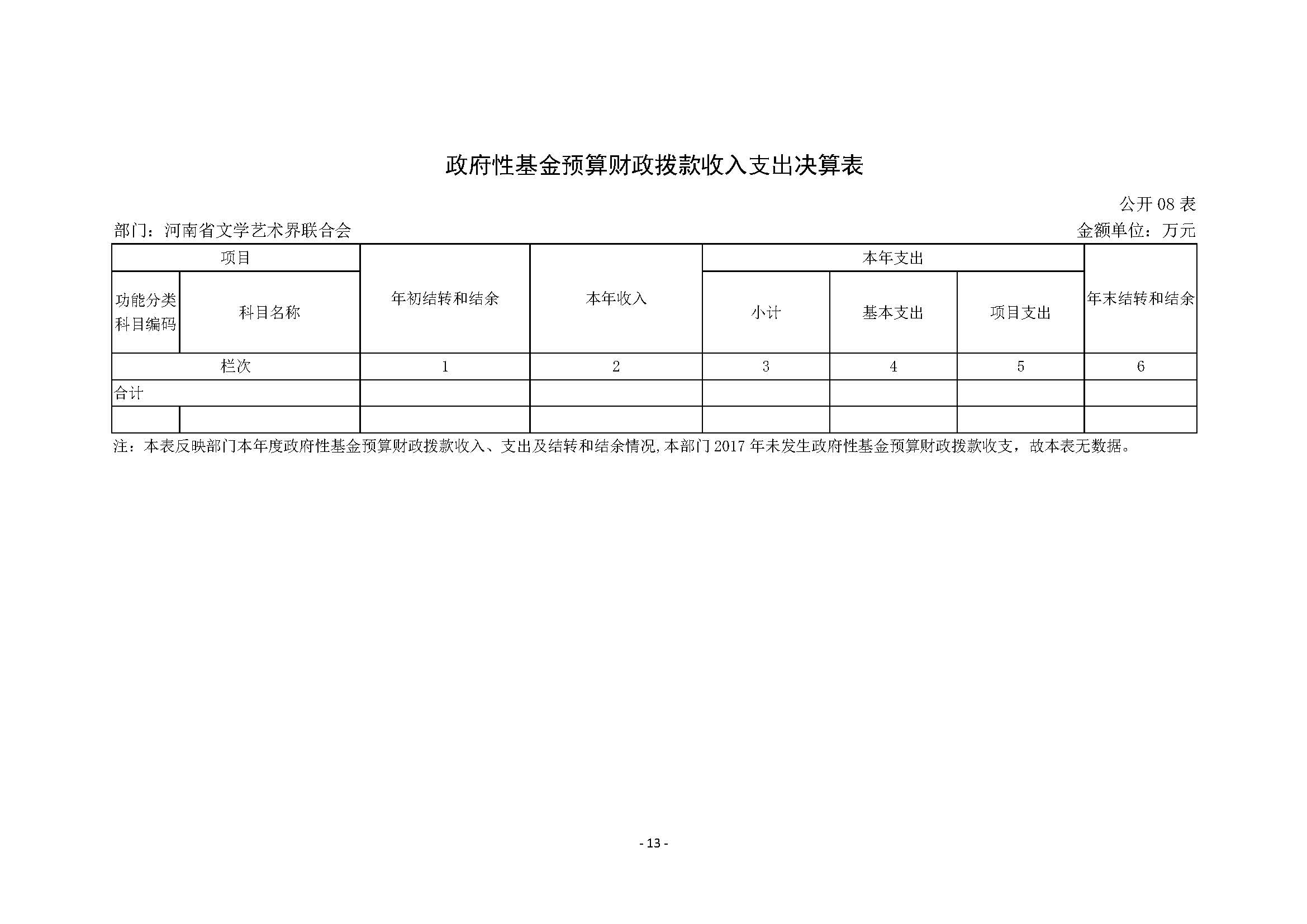 河南省文學(xué)藝術(shù)界聯(lián)合會(huì)2017年度部門決算公開 發(fā)布時(shí)間:2018-08-31 來源:河南文藝網(wǎng) 人氣:4984 上一篇: 2019年度河南省文學(xué)藝術(shù)界聯(lián)合會(huì)部門決算 下一篇: 河南省文學(xué)藝術(shù)界聯(lián)合會(huì)2013年度收入支出決算總表