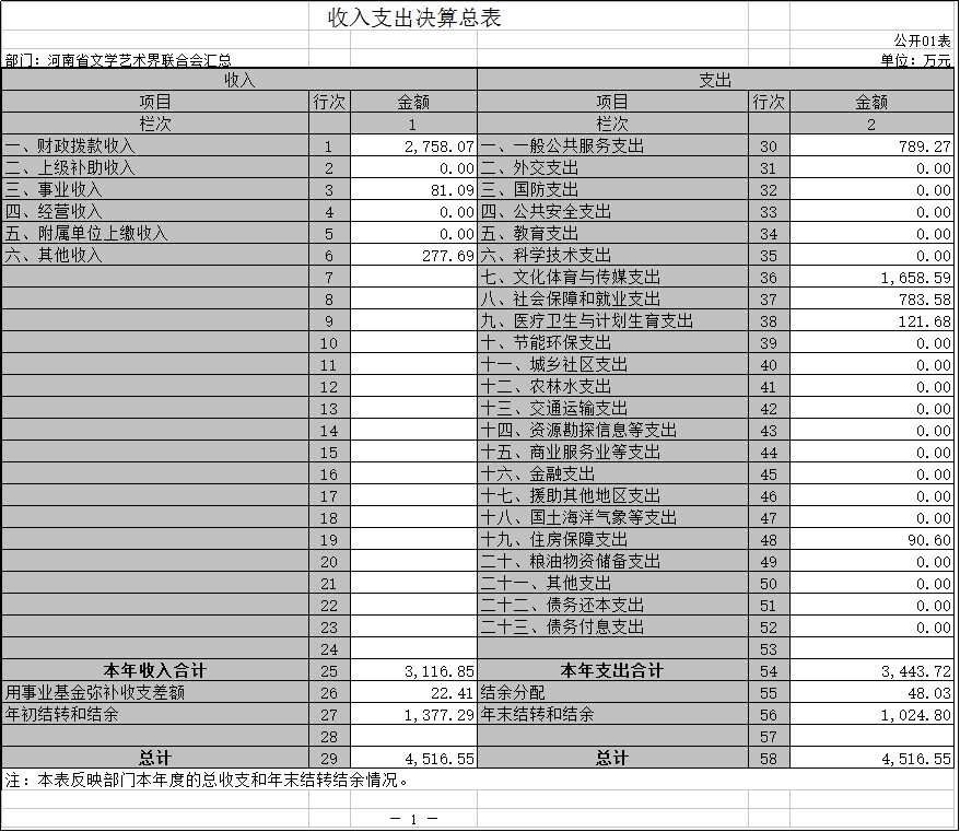 河南省文學(xué)藝術(shù)界聯(lián)合會(huì)2016 年度部門(mén)決算公開(kāi)