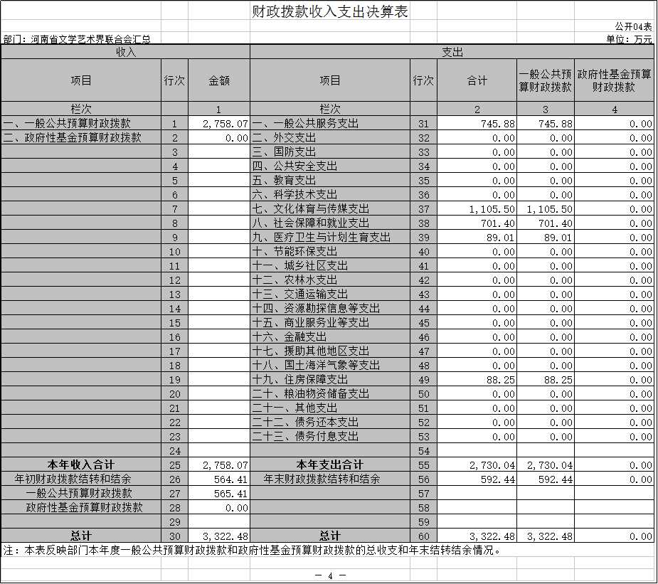 四、財(cái)政撥款收入支出決算總表