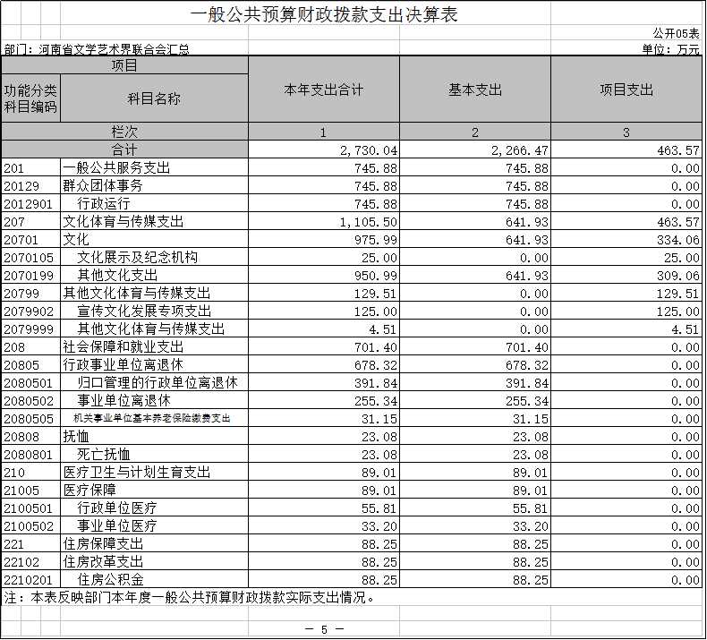五、一般公共預(yù)算財(cái)政撥款支出決算表
