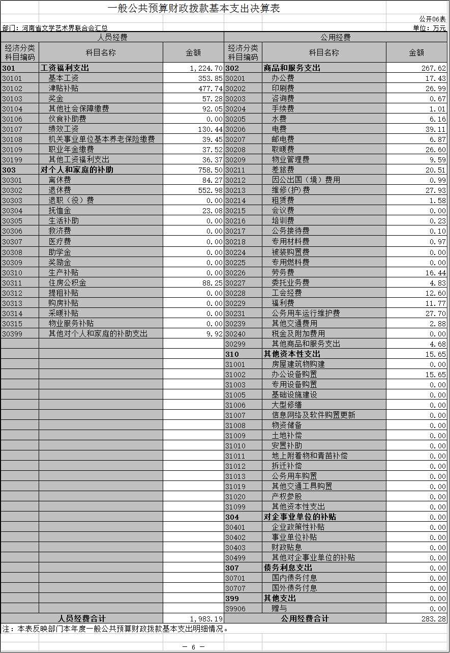 六、一般公共預(yù)算財(cái)政撥款基本支出決算表