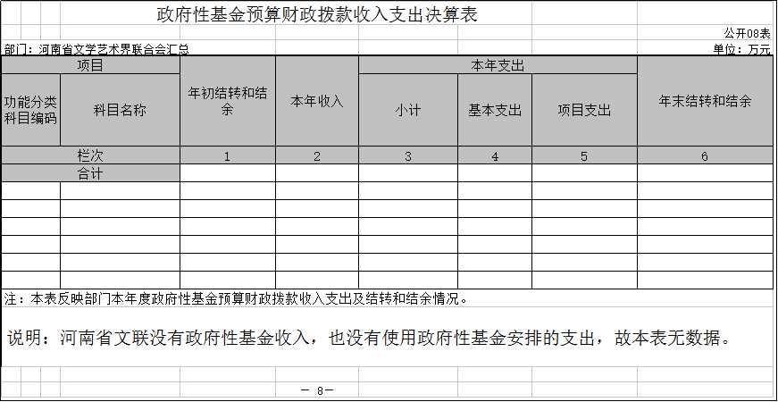 八、政府性基金預(yù)算財(cái)政撥款收入支出決算表