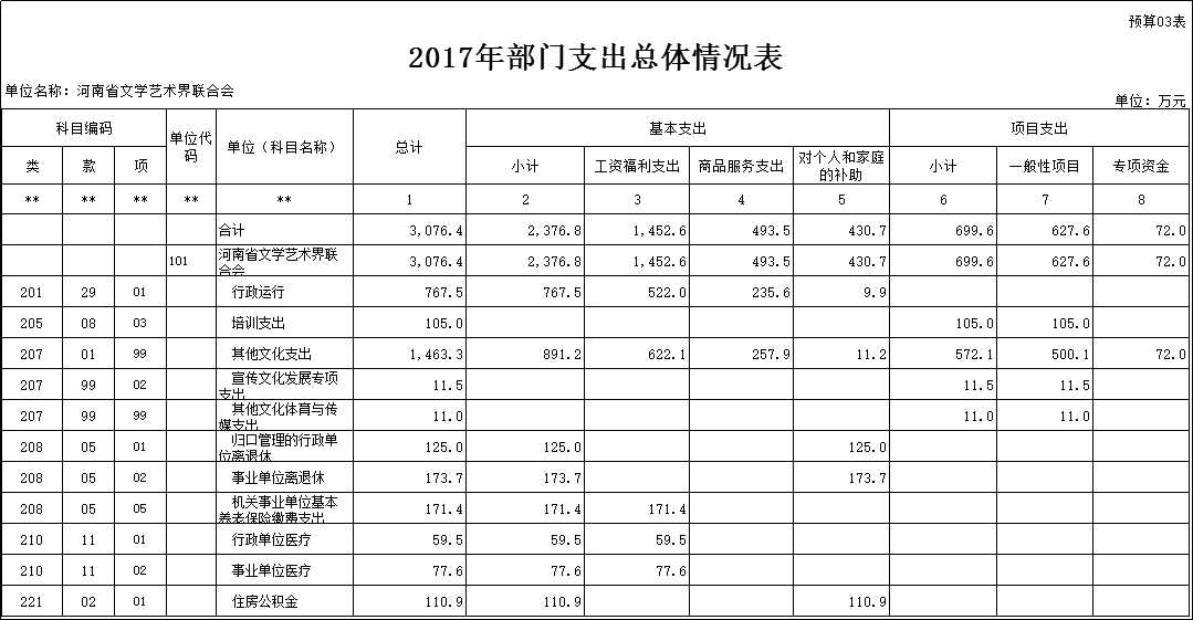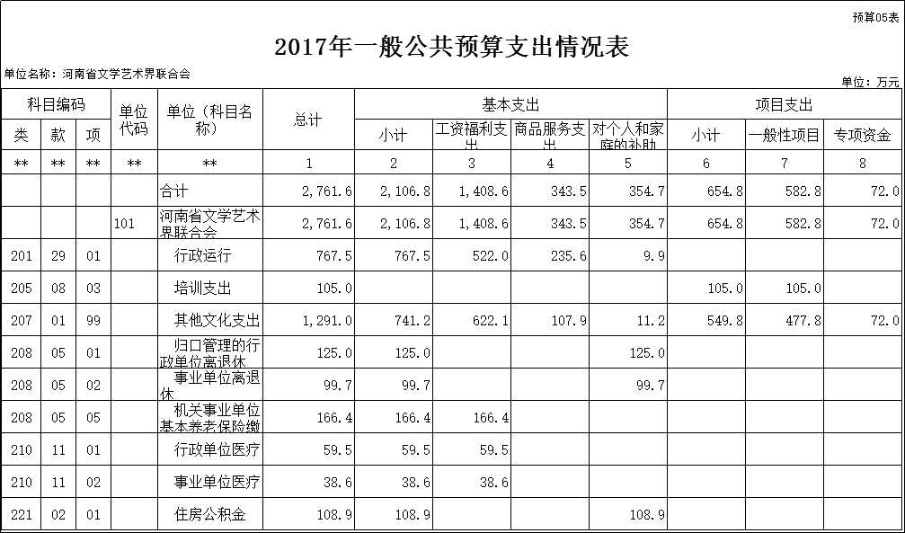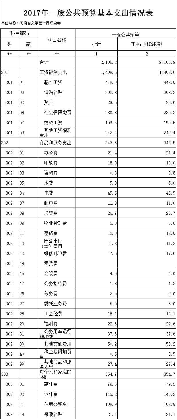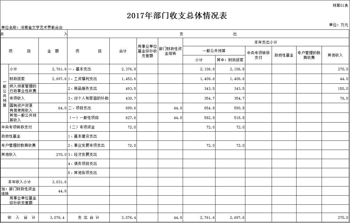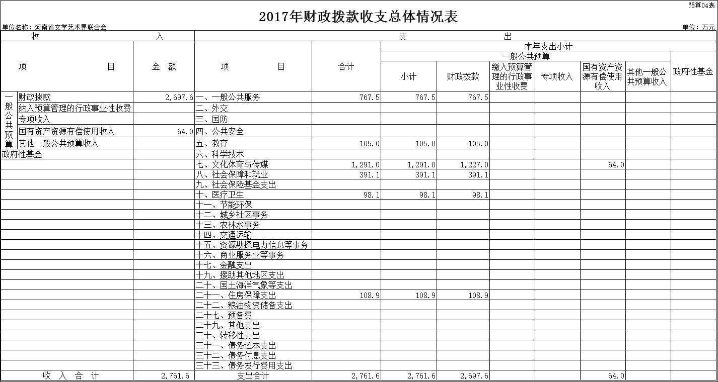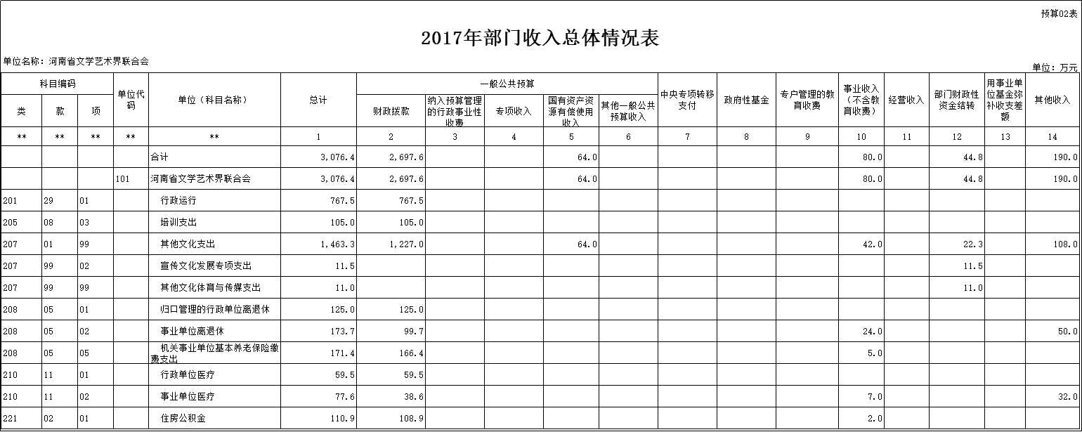 2017年度河南省文學(xué)藝術(shù)界聯(lián)合會部門預(yù)算公開